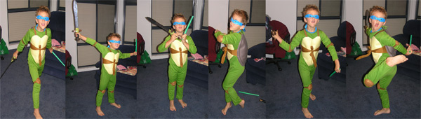 OK - in between the mundane parts of a 6 year olds existence, I do get treats. Like when Daddy came home with this Teenage Mutant Ninja Turtle dress up outfit. 'TMNT' are ACE! I went to see the movie at the end of the last school holidays with friends from school so we are all hooked now - until the next fad comes along anyway.