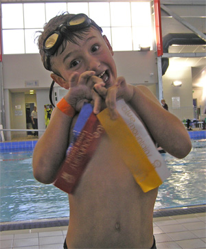 Well I made the school swim team last term which I was pretty stoked about. I won age champion at the school carnival and then got to represent the school at 3 other competitions. I did not enjoy the first one as no one tapped my ankle to let me know when to start. But the second one was awesome fun - although it was quite nerve-wracking swimming in the Olympic pool in front of lots of people. Here are some piccies: